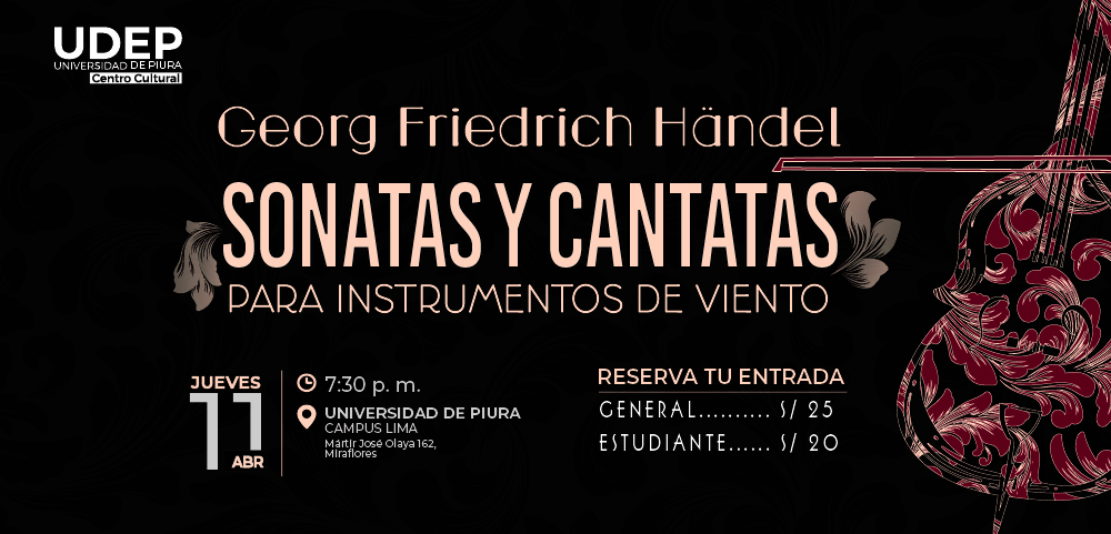 El Centro Cultural UDEP los invita a acompañarnos a nuestro próximo concierto “Georg Friedrich Händel: sonatas y cantatas para instrumentos de viento”