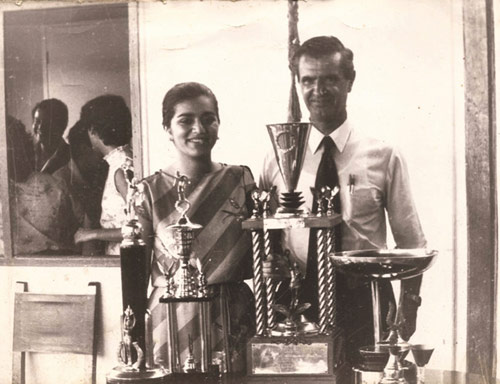 Mara, junto al Ing. Ramón Mugica, cuando era alumna de la UDEP. Estudió la carrera de Administración de Empresas y participó activamente en la organización de las olimpiadas .