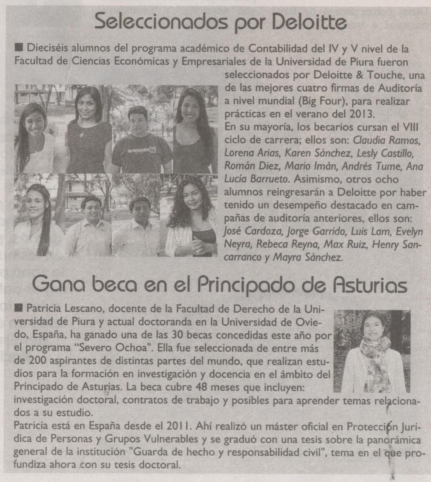 Noticia sobre nuestros alumnos seleccionados por Delloite y sobre la docente de Derecho que obtuvo una beca “Severo Ochoa”
