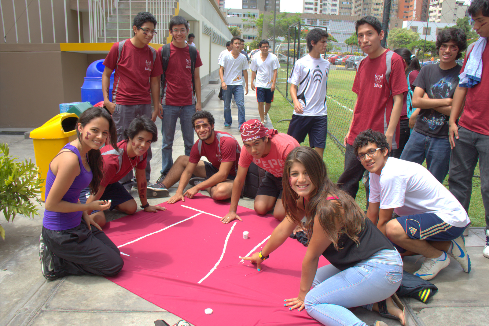 Nuevos alumnos del Programa Académico de Ingeniería Industrial y de Sistemas preparan afiches para alentar a su equipo.