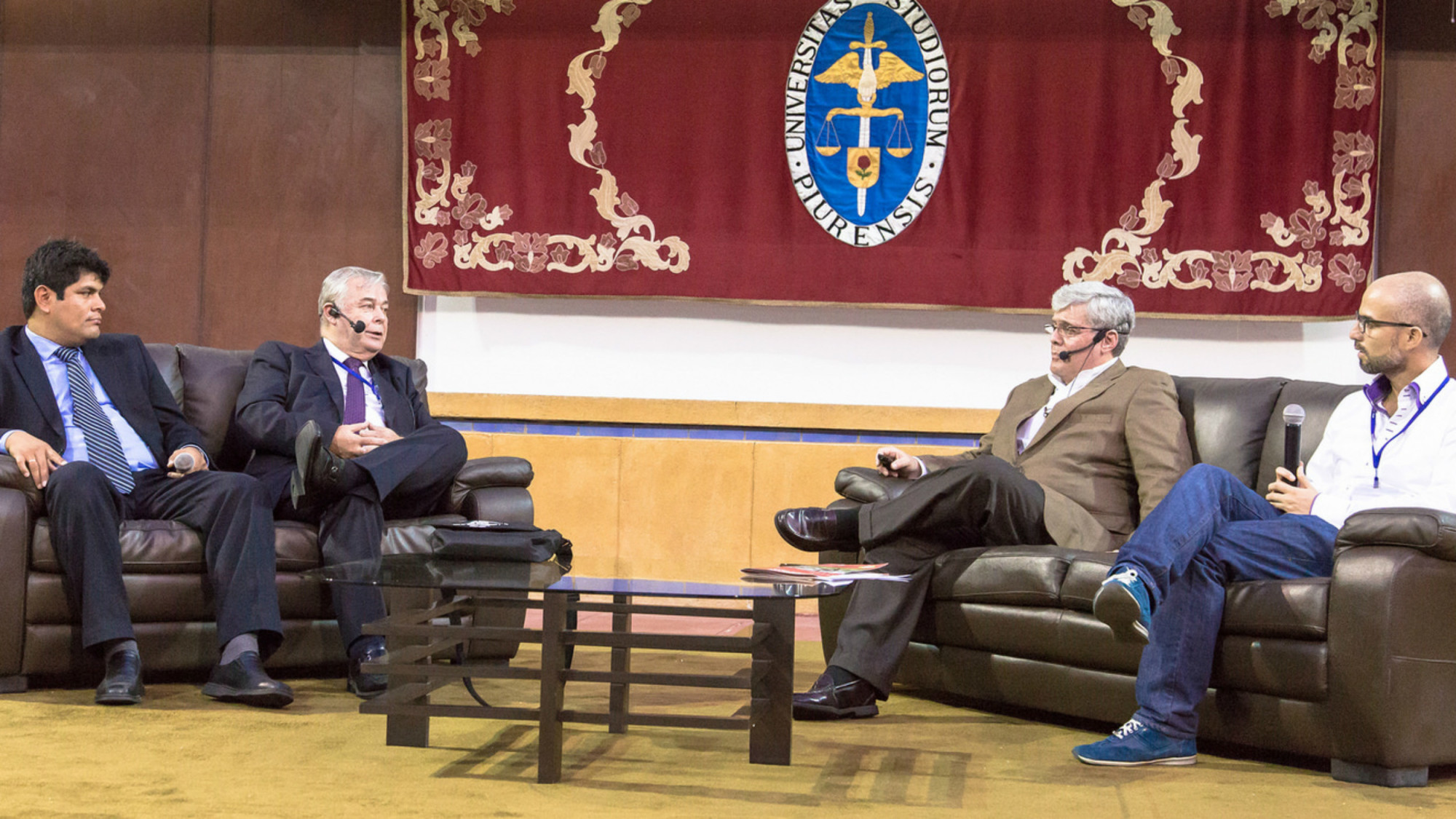 Ing. Hugo Fiestas y los doctores Héctor Kaschel y David Goldberg; y el moderador del panel, Félix Ipanaqué.