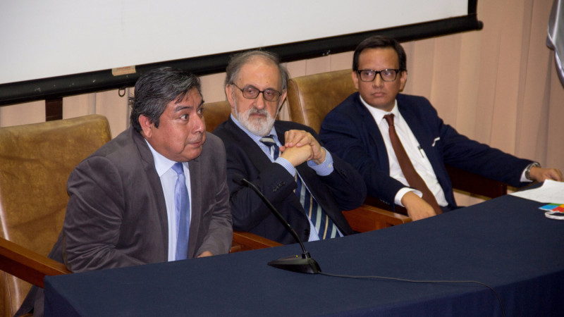 Dr. Jorge Machacuay, presidente de la Comisión Interdisciplinar; Dr. Enrique Banús, director del Centro Cultural y Dr. Andrés Garay, profesor de la Facultad de Comunicación