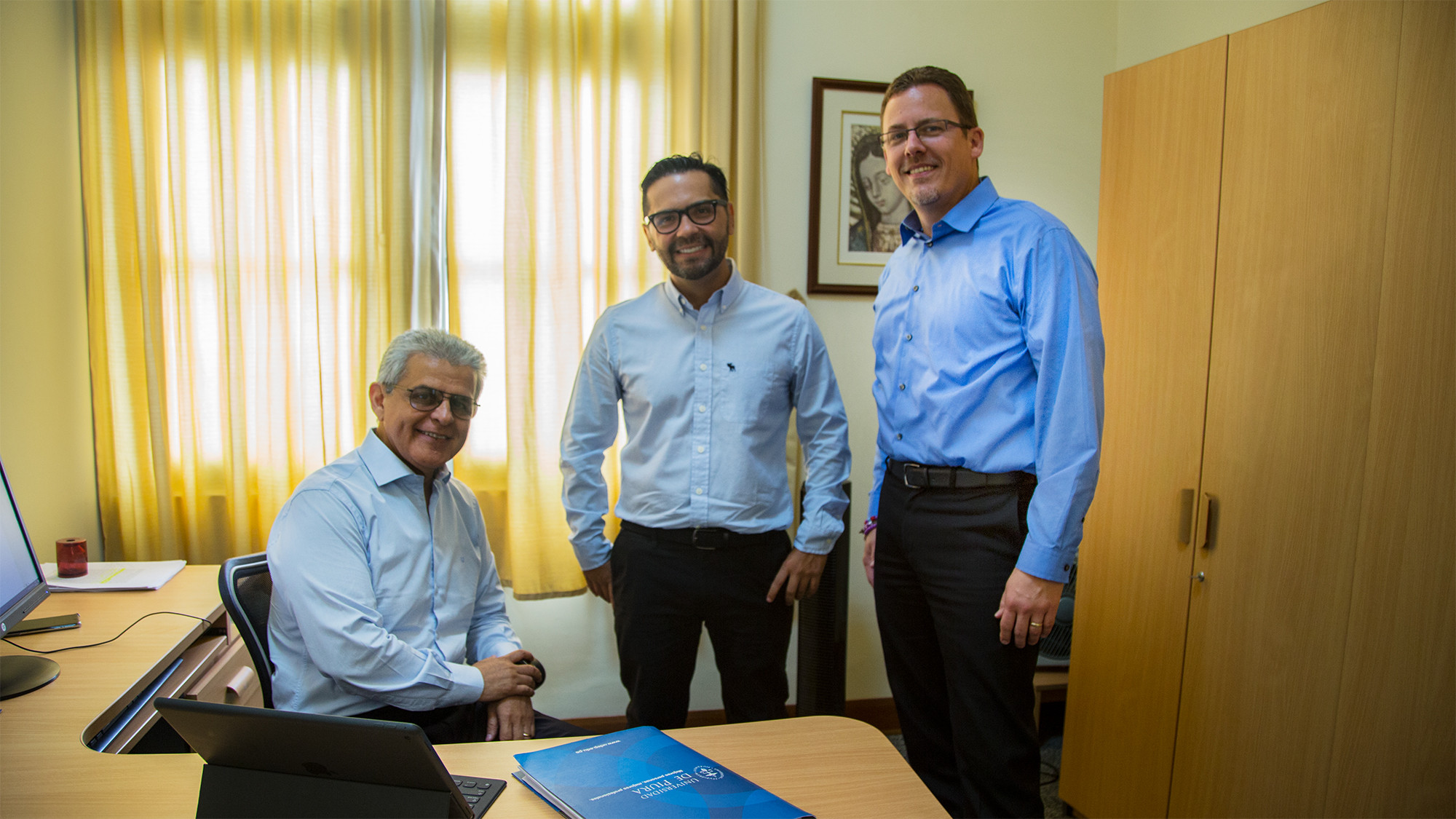 De izquierda a derecha: Mgtr. Luis García Tello, Dr. Mario Giraldo (Colombia) y Dr. Steven Rayburn (Estados Unidos).