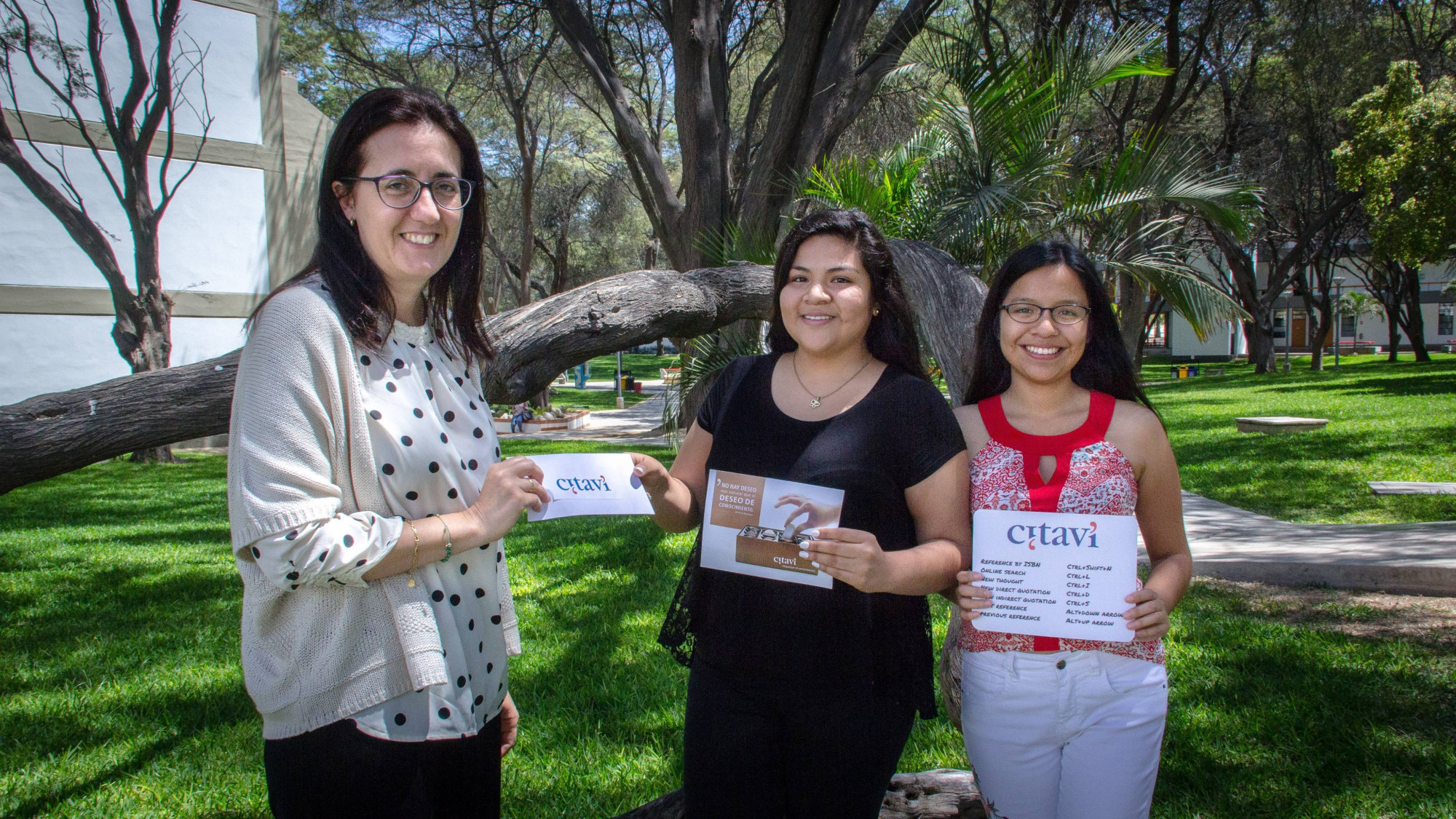 María José Andrade, Directora de Biblioteca en Campus Piura, junto a Romina Silva y Ximena Saavedra, ganadoras del Concurso de Citavi