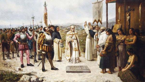 Pintura que ilustra la fundación de Lima en 1535 con Pizarro presidiendo el acto. Fecha y autor desconocido.