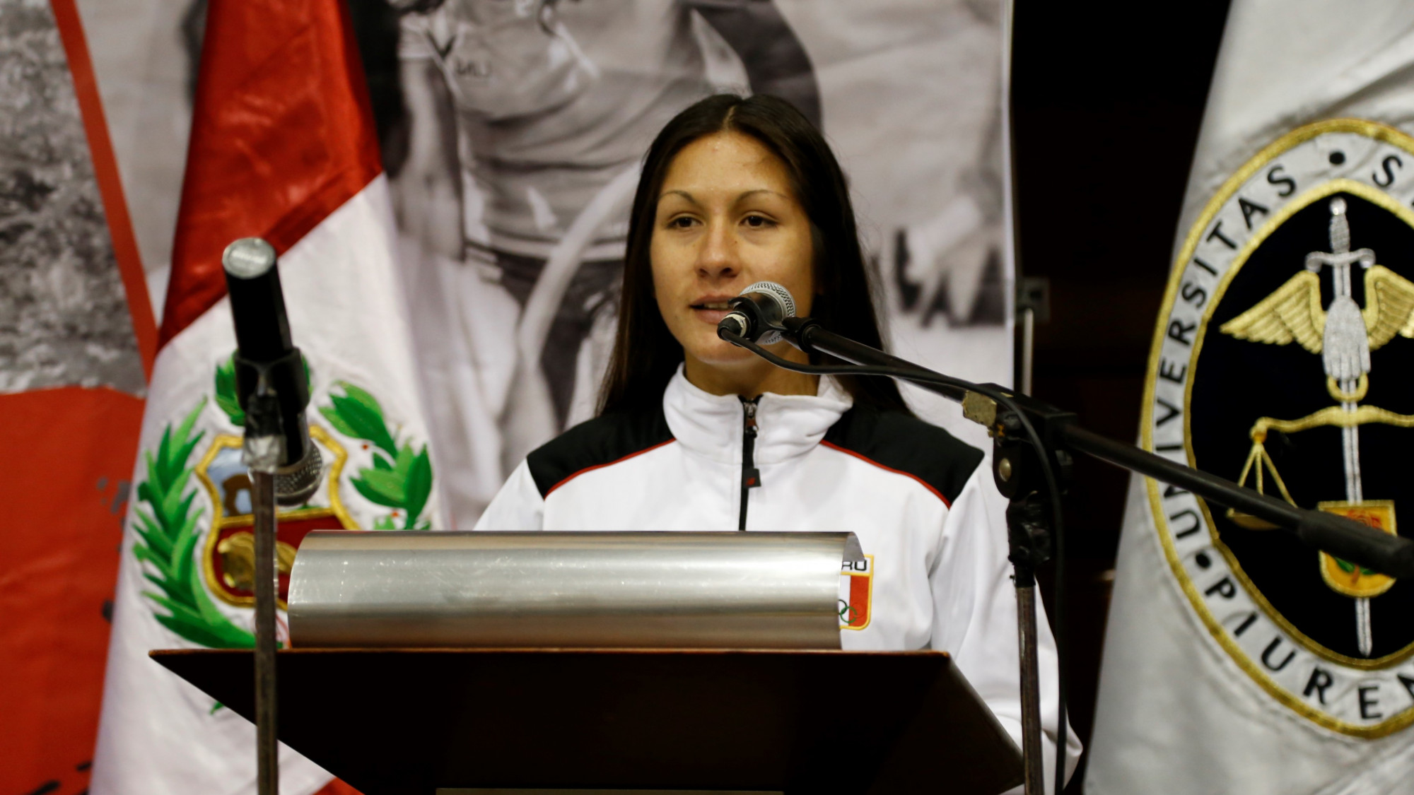 El Juramento Olímpico del evento estuvo a cargo de Pamela Noya, alumna del sexto ciclo del programa académico de Administración de Empresas y finalista en remo en los Panamericanos Lima 2019, en la categoría doble par cortos peso ligero femenino.