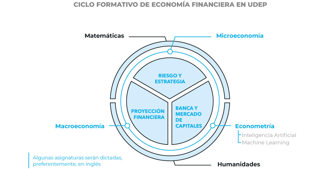 Al egresar de Economía Financiera en la UDEP comprenderás cómo funcionan los mercados y sistemas financieros desde sus fundamentos económicos hasta la modelación cuantitativa del riesgo y el valor. Nuestra formación integra teoría económica rigurosa, finanzas aplicadas, análisis de datos y criterios éticos para que puedas tomar decisiones de inversión, gestionar capital y liderar proyectos financieros en entornos competitivos y globalizados: