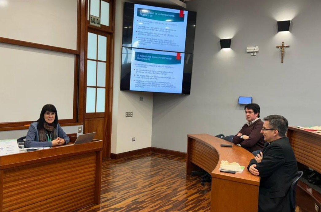 La profesora Mónica Ríos, de la Facultad de Humanidades y directora de Biblioteca, complementó este enfoque con su ponencia “Ecología integral y responsabilidad social: la necesidad de un fundamento metafísico y antropológico”. Desde una perspectiva holística, subrayó que el desarrollo sostenible debe centrarse en la dignidad humana y en la mejora integral de la calidad de vida. Ríos destacó que cualquier modelo de progreso verdaderamente humano requiere de un sustento ético que articule la responsabilidad social con el respeto por la naturaleza.