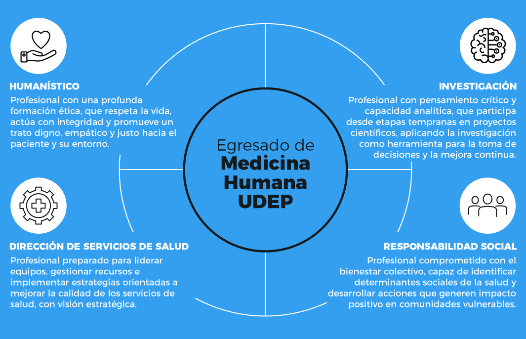 El perfil del egresado que se propone desarrollar la Facultad de Medicina Humana incluye capacitación en competencias genéricas, capacidades mínimas esenciales, perfiles profesionales específicos y conocimientos en las distintas áreas del saber médico.