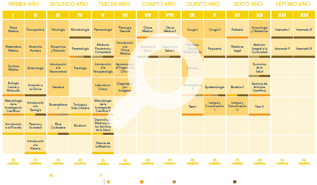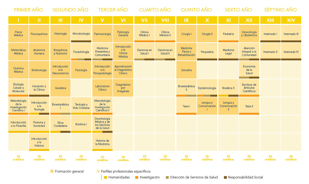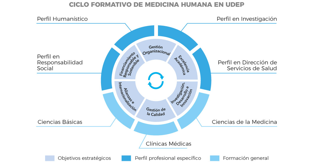 El plan de estudios de la Facultad de Medicina Humana favorece la profundización y aprendizaje por áreas académicas, y aporta una visión global de las ciencias médicas.