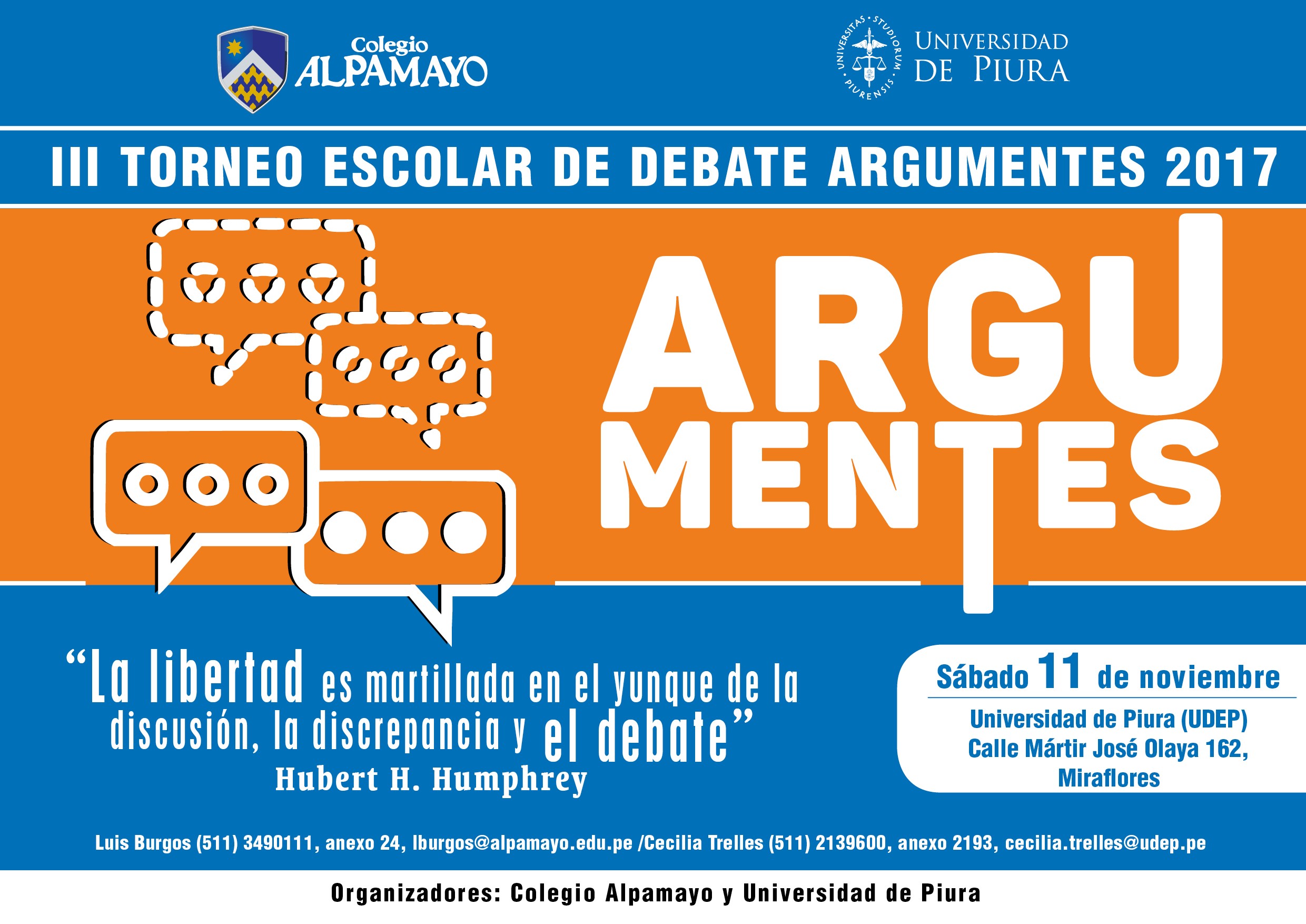 La Universidad de Piura en su constante apoyo a iniciativas académicas que promuevan la excelencia académica en estudiantes que se encuentren a puertas de terminar su etapa escolar, organizará Argumentes 2017.