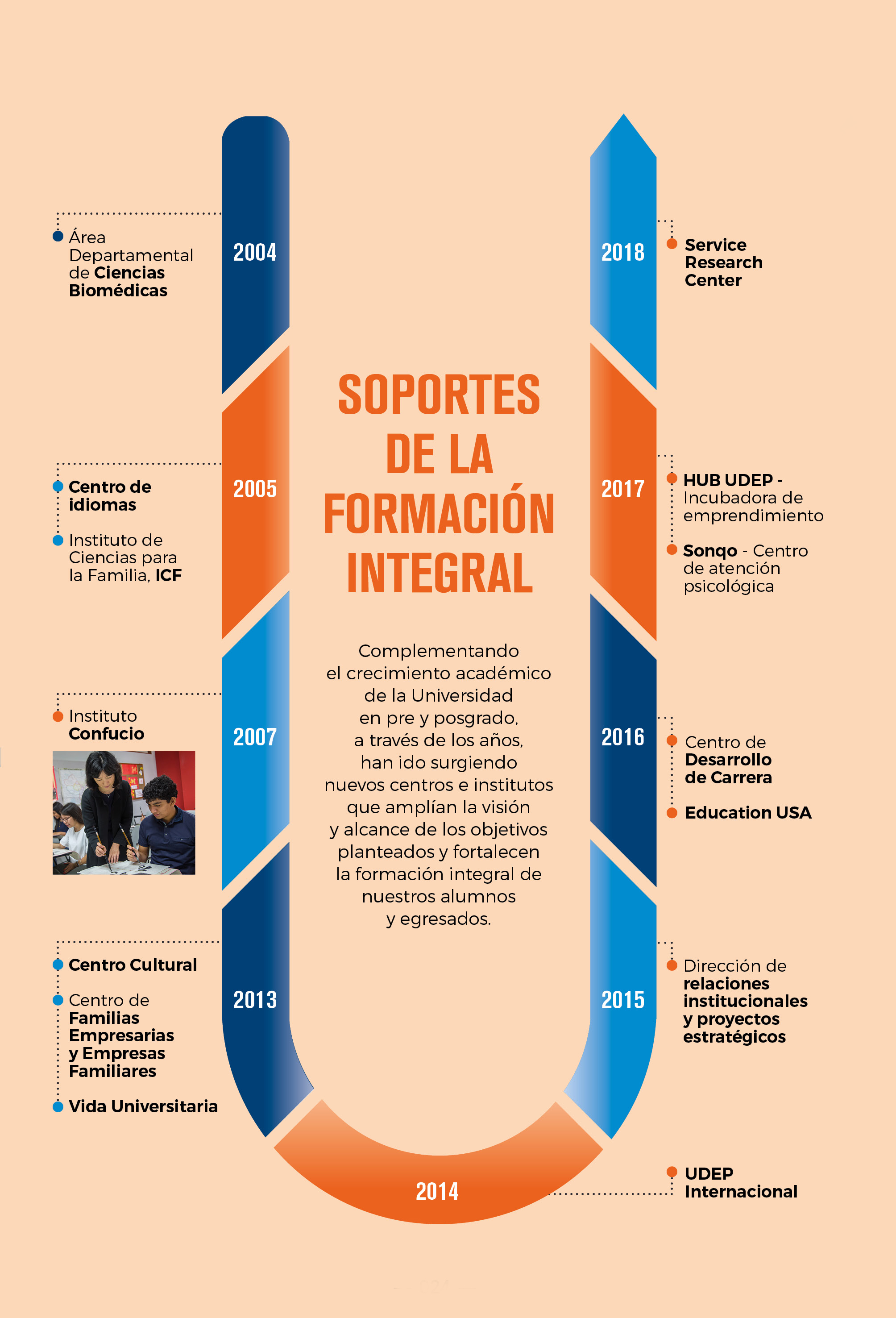 En adelante, el crecimiento académico de nuestra casa de estudios se ha ido dando de modo sostenido, procurando asegurar que la calidad y exigencia académicas sean las mismas que las del inicio; así como el bienestar de los estudiantes, la disponibilidad de los ambientes propicios (laboratorio, aulas) y las herramientas necesarias para su aprendizaje teórico práctico; investigación y, en suma, su formación integral.