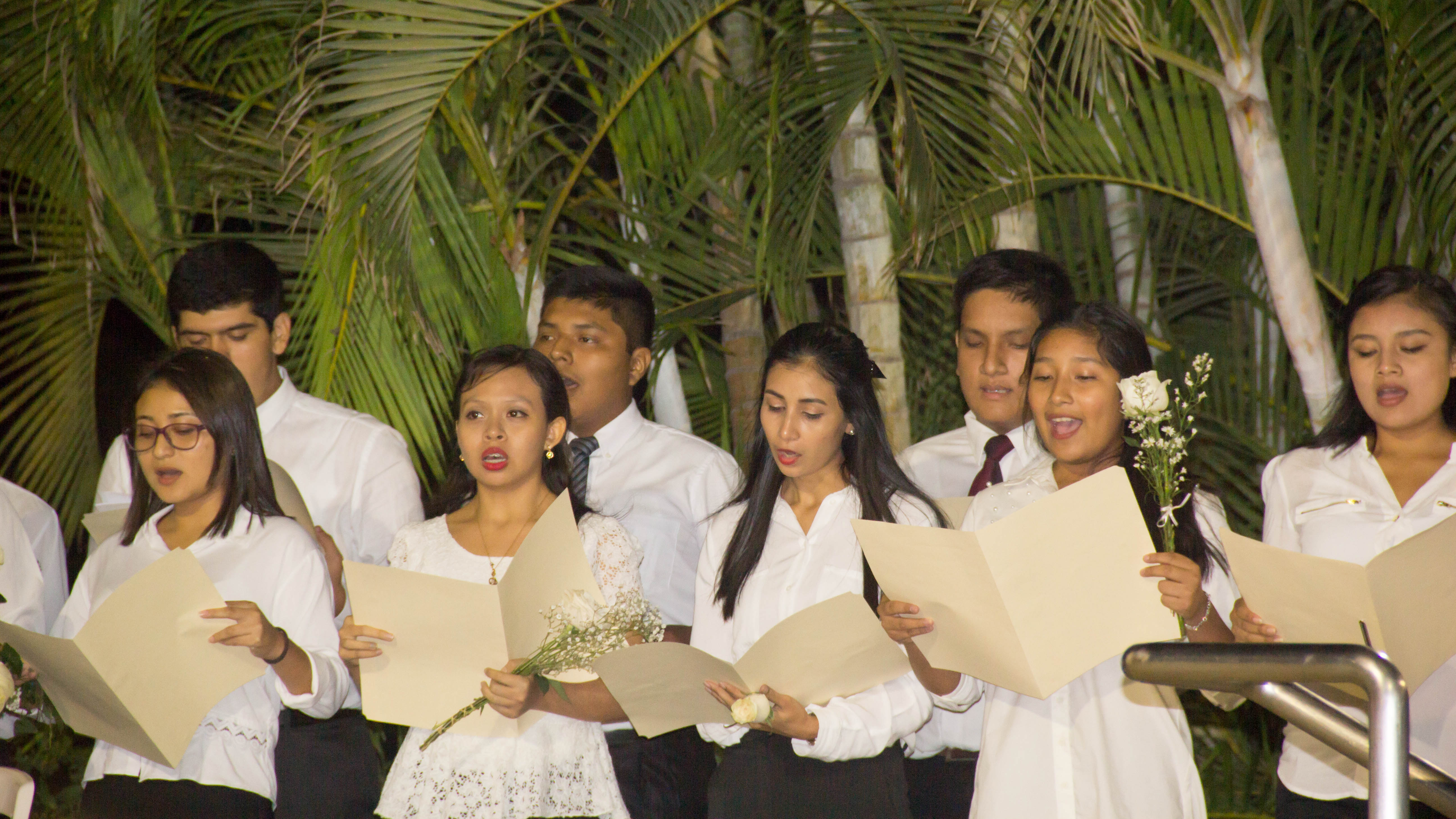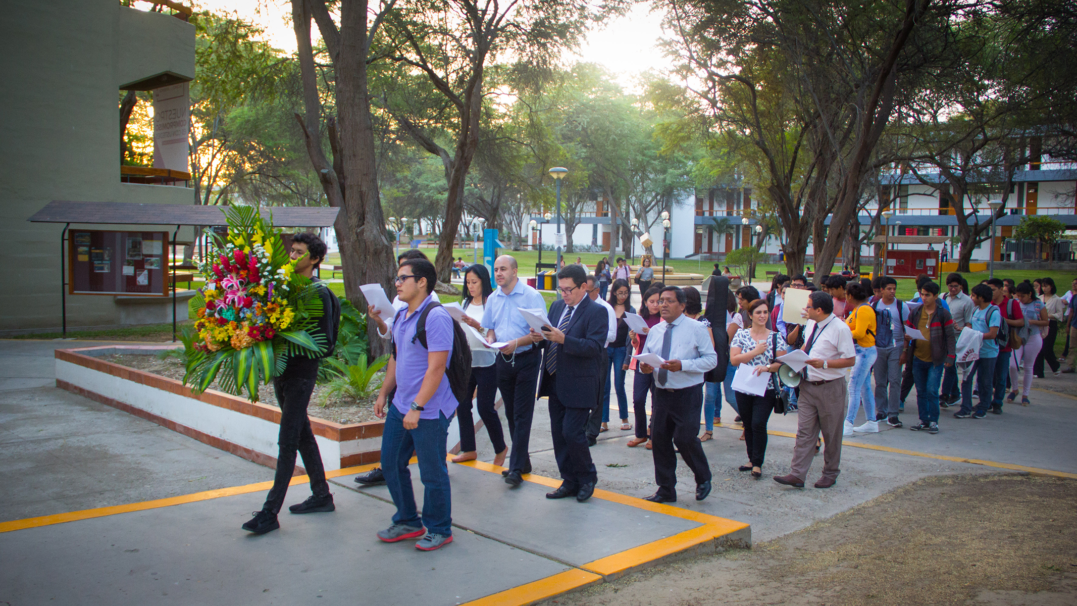 Esa noche, los corazones se calentaron con el garbo de la marinera (Economía y Administración de Servicios), los cánticos (Psicología, Administración de Empresas, Ingeniería y Medicina) y la poesía (Derecho). Los “Amigos UDEP” cantaron y el grupo Nación bicolor tocó la “Batucada a la Virgen María”.