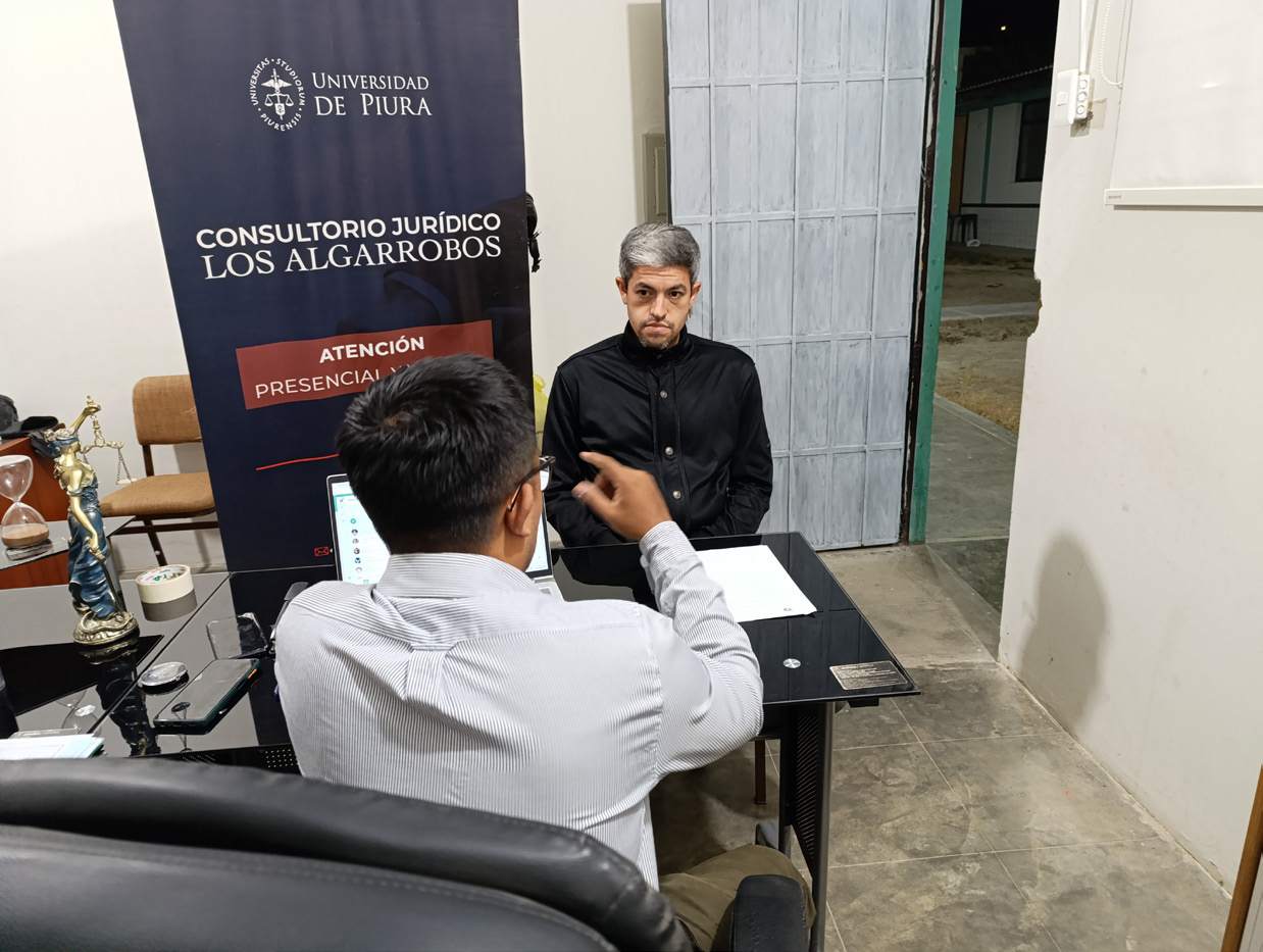 Desde 1994, el Consultorio Jurídico funciona como oficina legal en la Parroquia San Pedro y San Pablo, ubicada en el asentamiento “Los Algarrobos” (Piura).