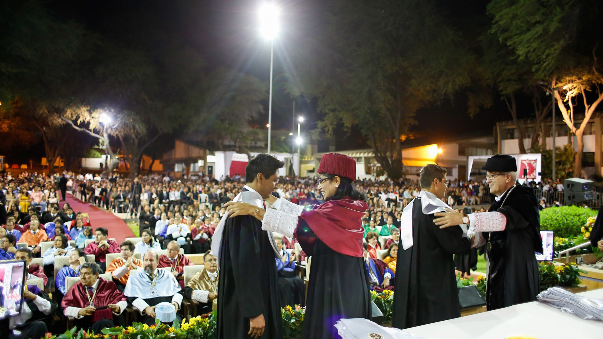 En sendos actos, realizados el 4 y el 18 de mayo, en Lima y Piura respectivamente, los 646 recién egresados recibieron sus insignias académicas que simbolizan el grado obtenido. Tras felicitar el resultado de sus años de esfuerzo y estudio, el rector Antonio Abruña los exhortó a afrontar “esta nueva aventura profesional de tal manera que cada paso que den apunte a la excelencia de vida. Integridad personal y trabajo bien hecho, ahí tienen dos claves para marcar la diferencia en sus trayectorias profesionales”, expresó.