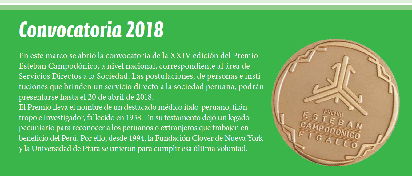 La premiación se realizó el 2 de agosto, en Campus Lima. Asistieron los embajadores de Finlandia, Italia y Paraguay; académicos y personas vinculadas al arte y la cultura. En este acto, el rector, Sergio Balarezo, anunció la próxima publicación de un libro biográfico sobre la figura de Esteban Campodónico, de la comunicadora Silvia Guerrero.