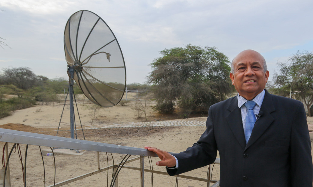 El doctor Rodolfo Rodríguez Arisméndiz fue distinguido con este reconocimiento, el máximo en cuanto a investigación que concede la Universidad de Piura, por sus más de 30 años dedicados al estudio y al desarrollo de sistemas de observación geofísica y climática.