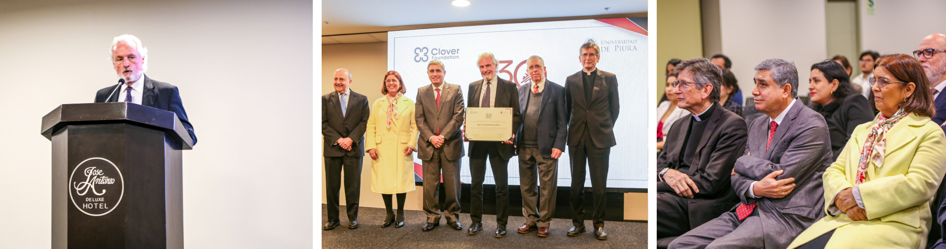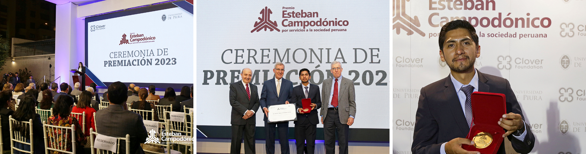 El Premio Esteban Campodónico por servicios a la sociedad peruana, nació por un acuerdo entre la Universidad de Piura y la Fundación Clover de Nueva York en 1994 para cumplir la voluntad testamentaria de su creador, don Esteban Campodónico (1866 – 1938). La primera edición se cumplió en 1995 y desde entonces las convocatorias se realizan cada año sin interrupciones.