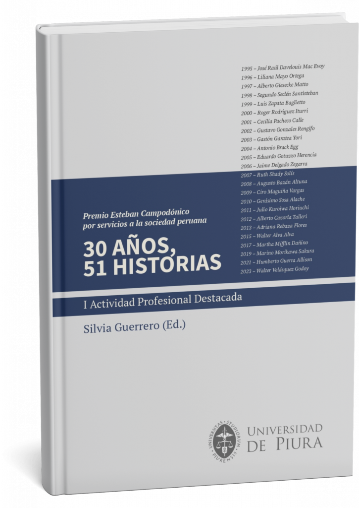 “30 años, 51 historias” es una publicación del 2024 que reúne los relatos de vida y trayectoria de los 51 galardonados del Premio Esteban Campodónico en sus primeras tres décadas (1995-2023). A través de un conjunto de reportajes periodísticos, la obra destaca el impacto de personas e instituciones que, desde distintas disciplinas y regiones del país, han dedicado su labor al servicio de la sociedad peruana.