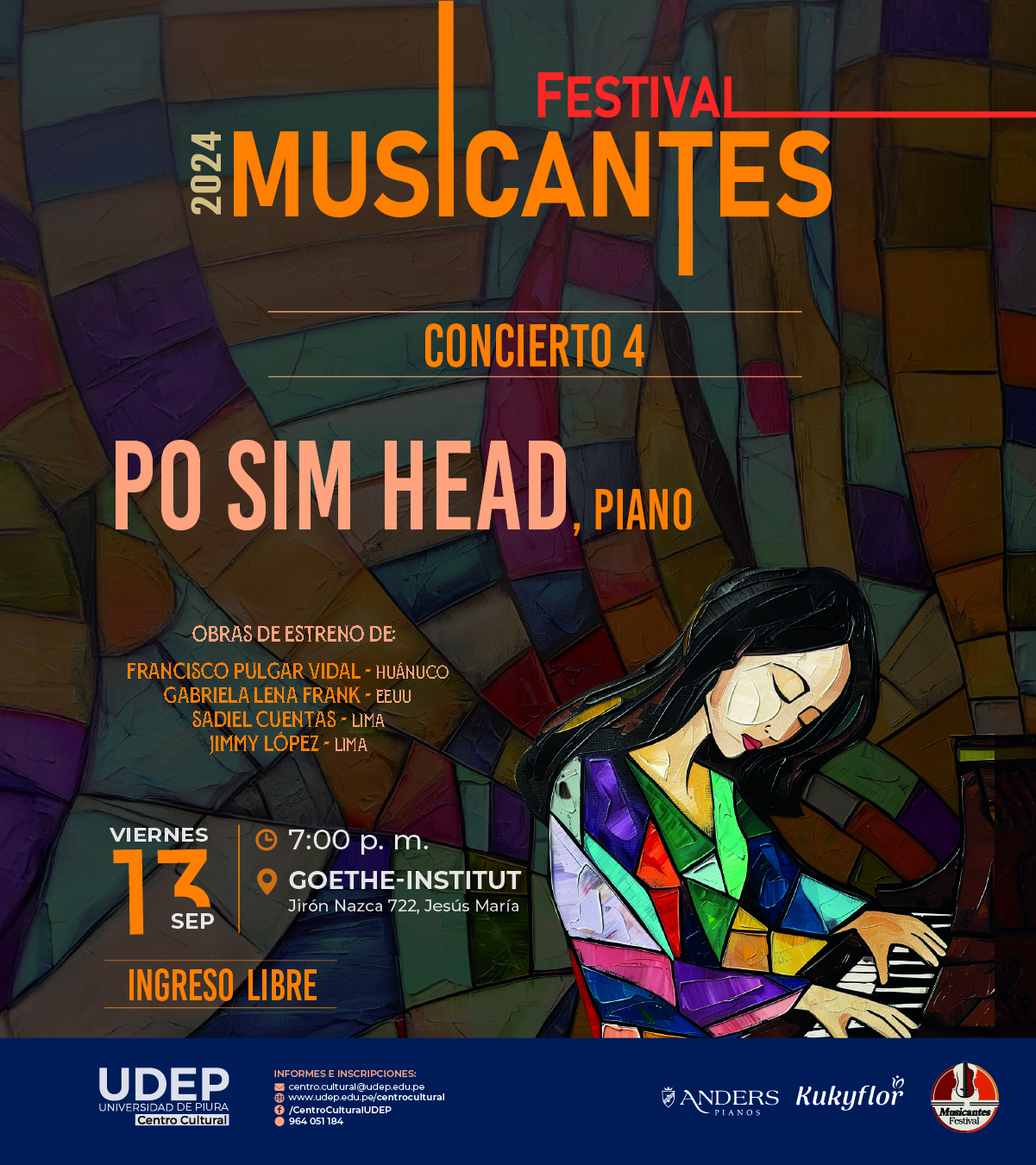 Po Sim Head, pianista hongkonesa, es una figura destacada en la música clásica, con un doctorado en interpretación de piano y pedagogía de la Universidad de Kansas. Completó su licenciatura en la Universidad Bautista de Hong Kong y posee maestrías de la Universidad de Missouri-Kansas City. Reconocida por su interpretación, musicología y enseñanza, se enfoca en promover talentos emergentes en piano. Activa académicamente y como jueza en competiciones internacionales, su interés en la música latinoamericana se refleja en su álbum dedicado a Francisco Pulgar Vidal y su próxima participación en el festival Musicantes 2024, interpretando obras de compositores peruanos y peruano-norteamericanos.