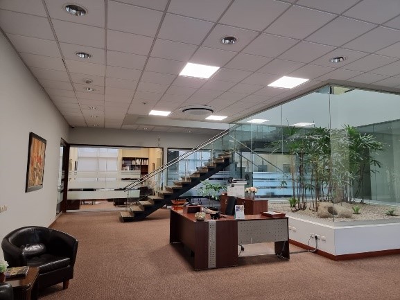 La infraestructura ha sido planificada para aprovechar al máximo la luz solar. Además, tiene ventilación natural, sistemas de seguimiento y control de consumo de energía, y sistemas ahorradores de agua.