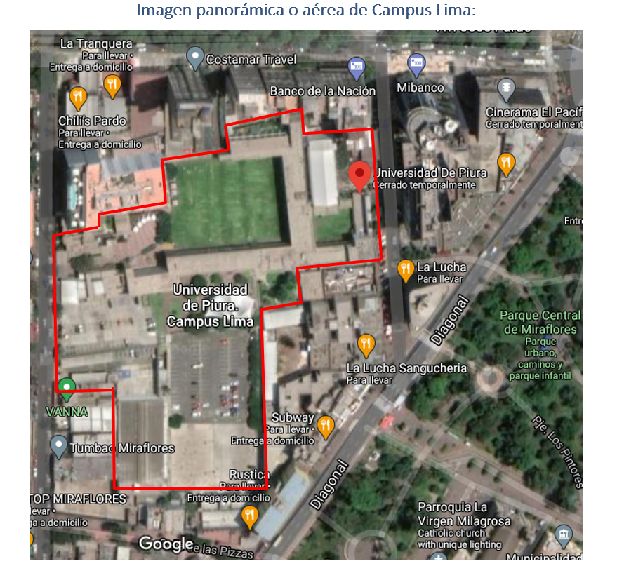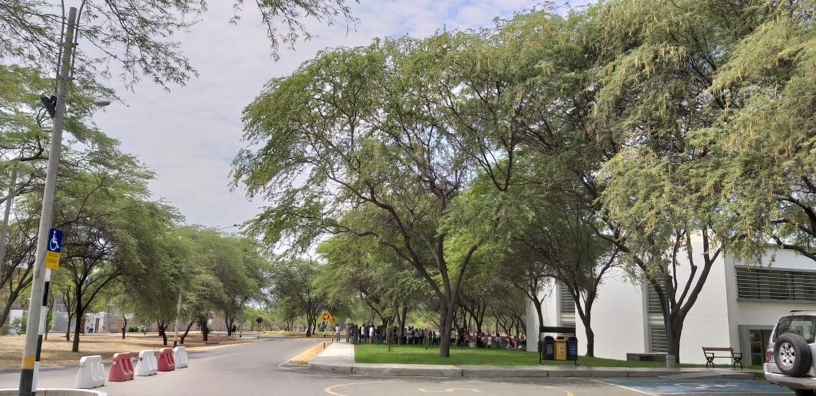 En Campus Piura, Campus Lima y el PAD todas las estructuras de la universidad se ha considerado construir en la orientación este – oeste, a fin de evitar asoleamiento. Además de poder ganar mayor longitud de ventanas de norte a sur y captar mayor ventilación e iluminación natural. Adicional cuentan con aleros para protegernos en horarios del sol. Cada edificio está rodeado de vegetación.