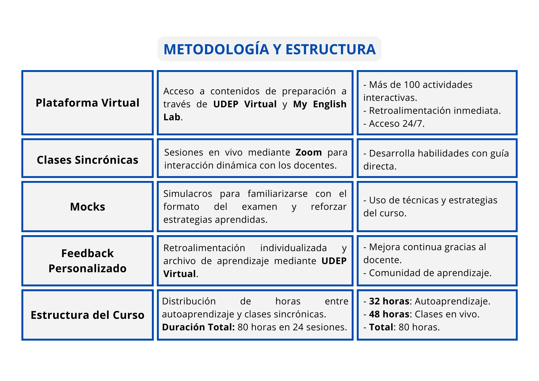 Prepárate para dominar el formato del examen Cambridge, diseñado con un estándar específico que puede ser desafiante. Un curso de preparación especializado te familiarizará con cada sección del examen y te brindará una ventaja significativa para afrontarlo con éxito. Con la certificación Cambridge B1 Preliminary (PET), demostrarás tu nivel de inglés en instituciones nacionales e internacionales, abriendo puertas a nuevas oportunidades laborales y educativas.