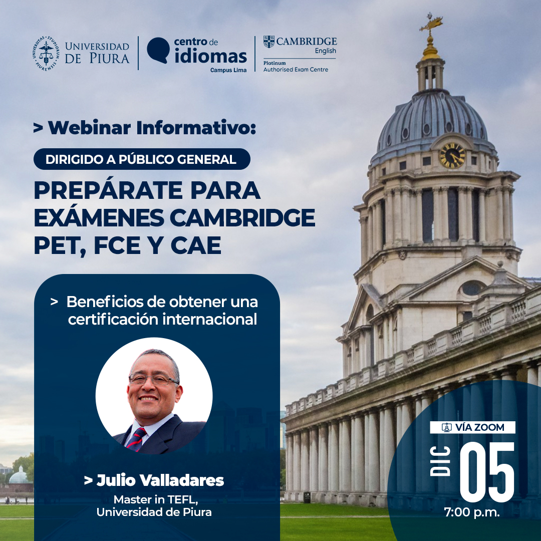 Únete a la sesión informativa dirigida por Julio Valladares, Master in TEFL, y descubre los cursos de preparación para los exámenes PET, FCE yCAE.