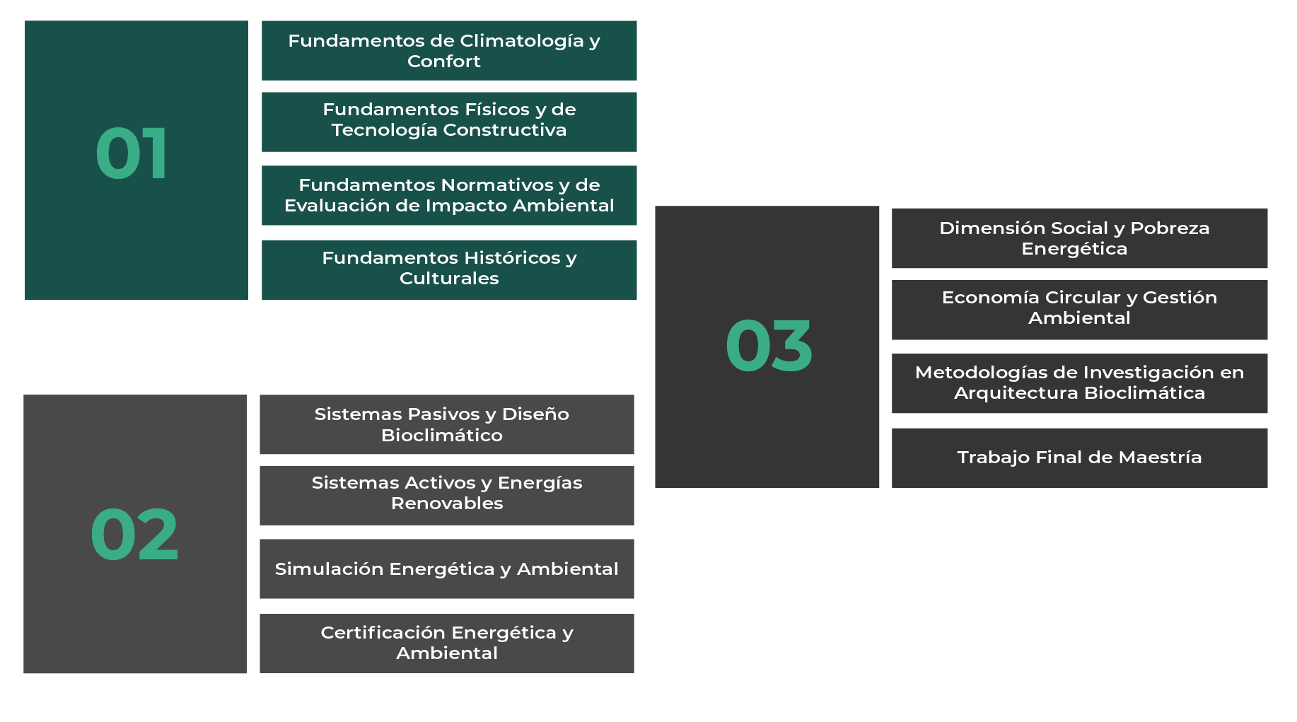 Su propuesta integra diseño bioclimático, análisis climático, tecnología constructiva, economía circular y certificación ambiental, brindando herramientas prácticas para aplicar estrategias pasivas y activas, evaluar el desempeño energético con software especializado y tomar decisiones con impacto ambiental, social y económico positivo.