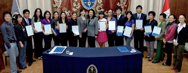 Los alumnos de la Universidad de Piura que recibieron la acreditación son: Facultad de Ingeniería: Andrea Marroquín Liu y Jianwei Mao; Facultad de Ciencias Económicas y Empresariales: Annika Jave, Raúl Amen Li y Felipe Sarmiento; Facultad de Derecho: César Angulo y Astrid Chepote; Facultad de Comunicación: Diana Villena.
