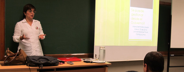 Por Julio Talledo. 11 mayo, 2012.(Lima).- Mara Seminario Marón, exdirectora de Promperú y exviceministra de Turismo, dictó en la Universidad de Piura la conferencia: ¿Cómo gestionar desde la administración pública?, en la que explicó algunas de las estrategias implementadas en el sector Turismo del país durante su trabajo en el sector estatal. La exfuncionaria –egresada de la Universidad de Piura- visitó el campus como parte de las actividades de la Semana de la Facultad de Ciencias Económicas y Empresariales.
