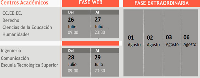 Por Julio Talledo. 26 julio, 2012.(Piura).- El 26 de julio se iniciaron las inscripciones para el periodo académico 2012-II de todas las carreras, incluidas las de la Escuela Tecnológica Superior. El proceso se realiza en 2 fases: vía web y fase extraordinaria.