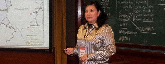 Durante su exposición, la Mgtr. Farías explicó la complejidad del aspecto físico en las concesiones, exploraciones y explotaciones mineras. Remarcó la importancia de las cuencas hidrográficas, las divisorias de agua y sus implicaciones al momento de analizar áreas de influencia de un proyecto. Asimismo, expresó que se dice mucho de la minería, pero no se habla sobre una base física sólida como los espacios geográficos, representados a través de la cartografía, siendo esto el punto de partida de cualquier negociación. Agregó, que dicha información debe estar al alcance de todos los actores.