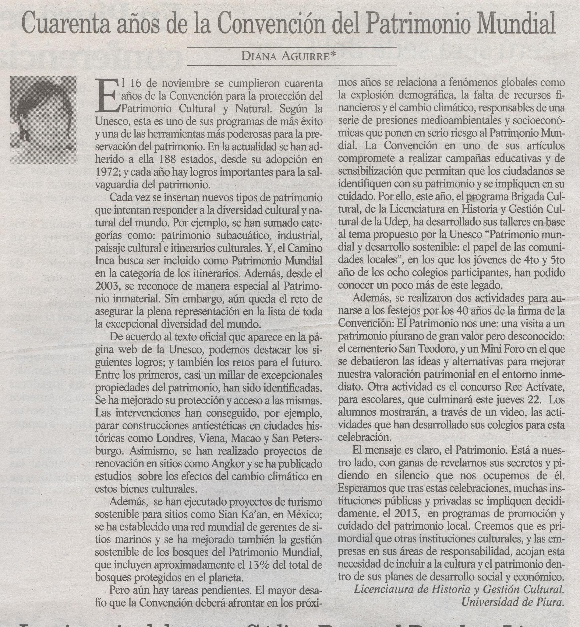 • Cuarenta años de la Convención del Patrimonio Mundial.