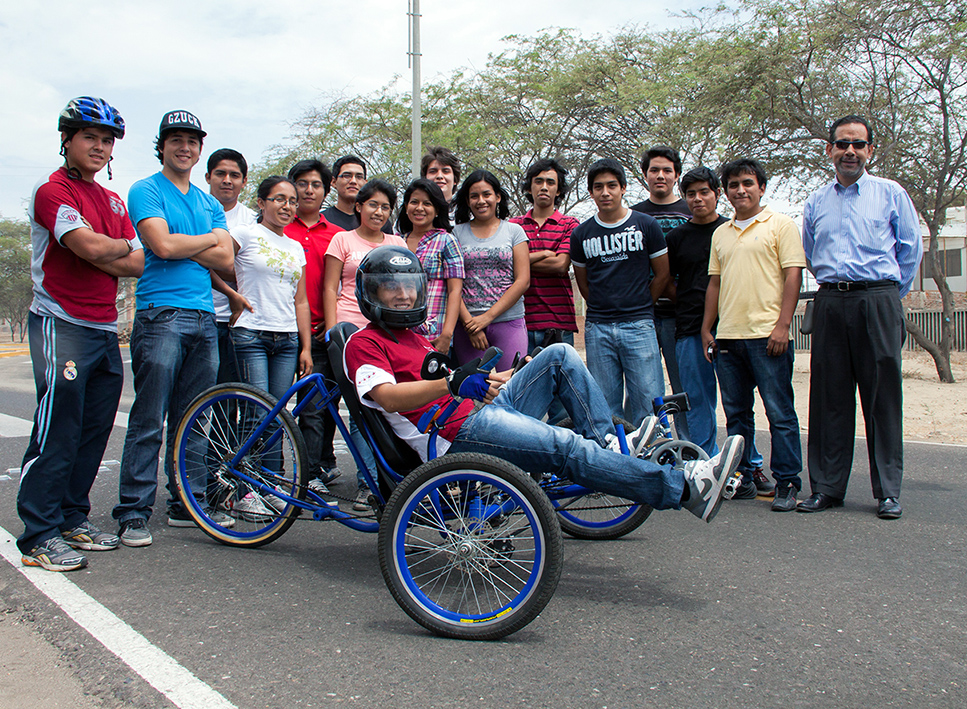 (Piura).- Alumnos de la Facultad de Ingeniería de la UDEP presentaron una nueva versión del Human Powered Vehicle (HPV). Este vehículo, impulsado por potencia humana, fue diseñado por estudiantes del curso Mecánica Dinámica (MDI), que dicta el doctor Carlos Ojeda, quienes pusieron a prueba su creatividad y conocimientos aprendidos en clase.