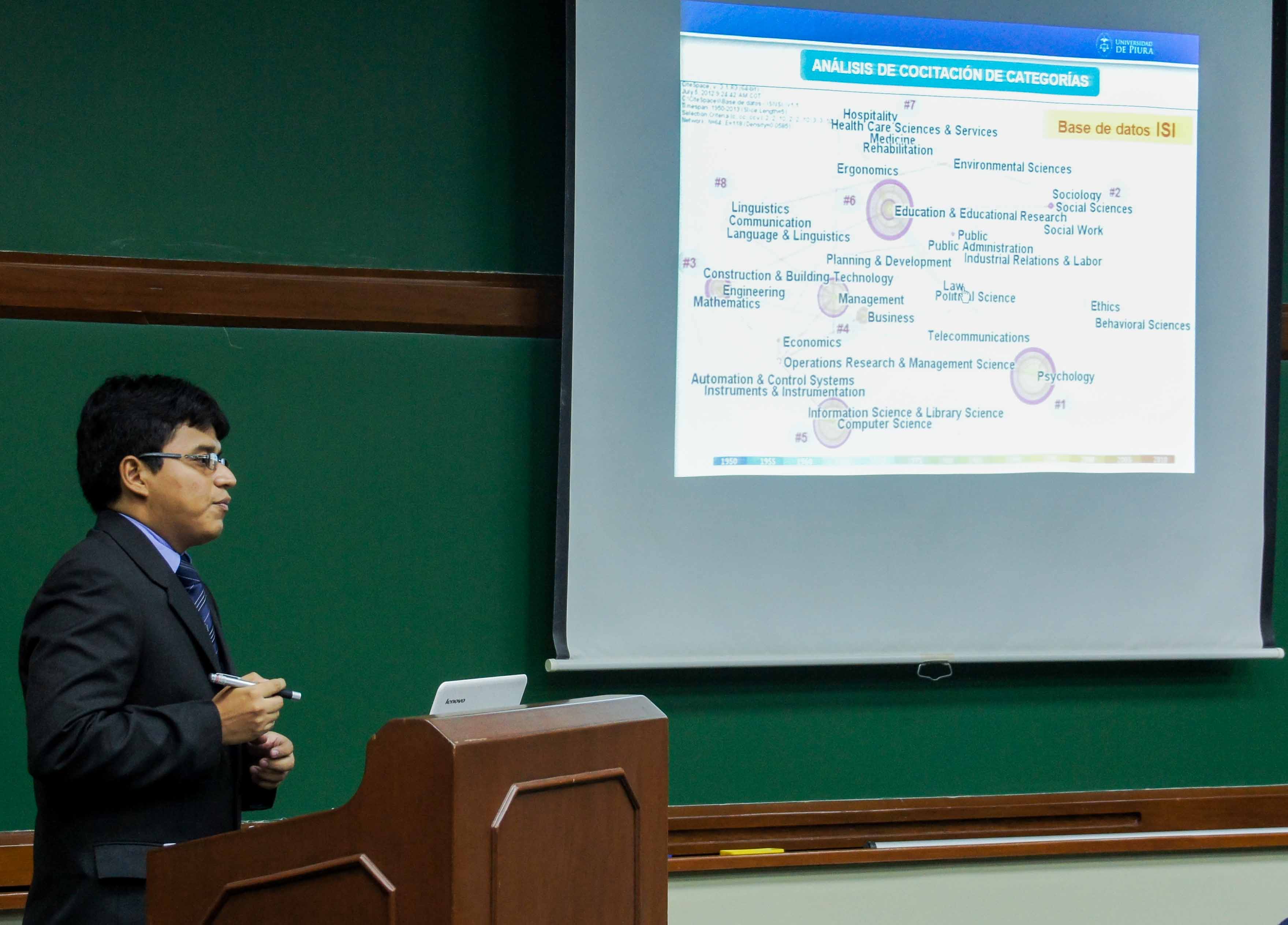 Durante su exposición, La Rosa explicó que el objetivo central de su estudio fue visualizar la estructura de la investigación en torno a las competencias profesionales mediante el análisis de redes sociales de la literatura de investigación, teniendo en cuenta las relaciones entre los autores, que a través de sus investigaciones, han realizado valiosa aportación al estudio de las competencias profesionales.