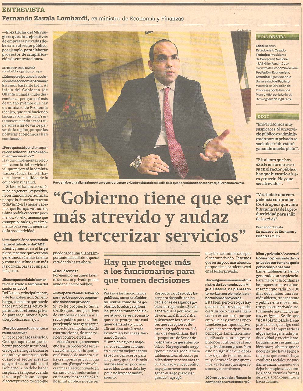 Entrevista a Fernando Zavala, ex ministro de Economía y Finanzas, con maestría en Dirección de la Empresas por la Universidad de Piura.