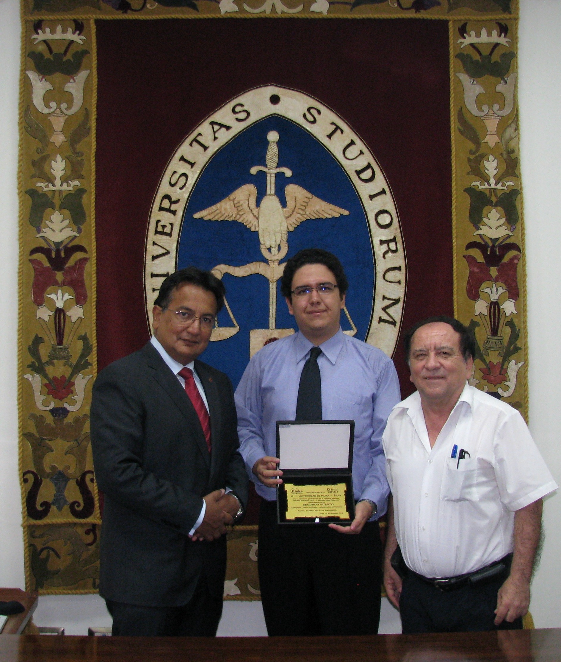 Por Olivia Orrego Córdova. 06 febrero, 2013.(Piura).- Tras el Concurso Nacional de Incentivo Comercio Exterior y Turismo, organizado por el Ministerio de Comercio Exterior y Turismo ( Mincetur), Alberto La Torre—director de Comercio Exterior de la Dirección Regional de Comercio y Turismo (DIRCETUR) —entregó un reconocimiento al Dr. Sergio Balarezo, rector de la Universidad de Piura por la participación de Rodrigo Falcón, egresado de Historia y Gestión Cultural, quien obtuvo el segundo lugar con la presentación de su tesis: “Proyecto integral de dinamización del “Museo Paleontológico Elba Aranda de Sarango”.