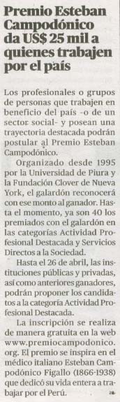• Premio Esteban Campodónico da US$ 25 mil a quienes trabajen por el país
