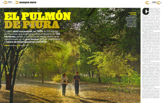 Por Claudia Reto. 12 marzo, 2013.Cuatro días. Un campus universitario y en medio de él, un bosque seco. De seis de la mañana a siete de la noche, perdidos entre algarrobos y bajo un clásico y fuerte sol piurano, dos periodistas de la revista ‘Somos’ conocieron cada rincón de la Universidad de Piura, y publicaron, en su edición del sábado 9 de marzo, un reportaje que expone ante todo el Perú la riqueza natural que alberga la UDEP.