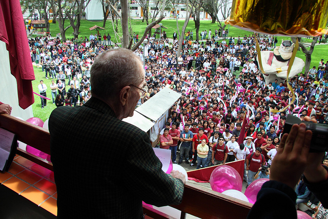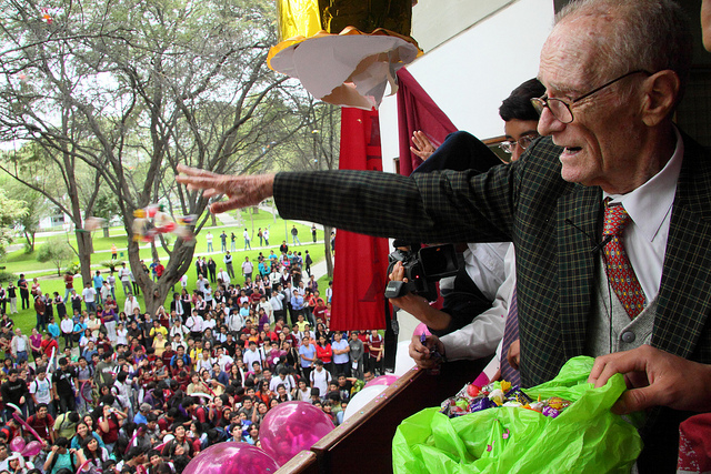 Para sus 80 años, los alumnos de la Promoción 2010 de la Facultad de Ingeniería le prepararon algunas sorpresas, como la intervención del grupo Orquestal que interpretó Las mañanitas y el Happy Birthday, una marinera que bailaron dos alumnos y coplas cajamarquinas entonadas con fuerza por los chicos de la barra de Ingeniería.