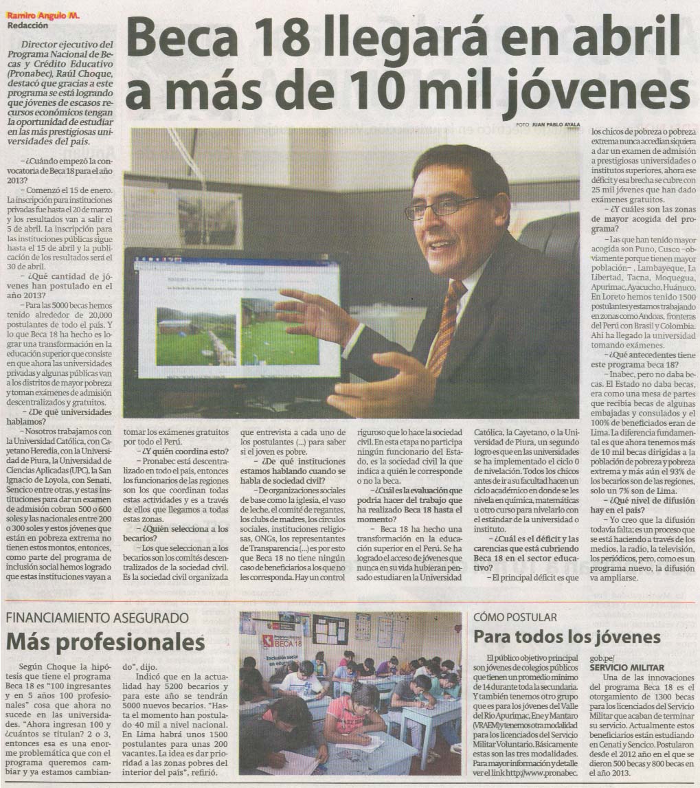• Beca 18 llegará en abril a más de 10 mil jóvenes