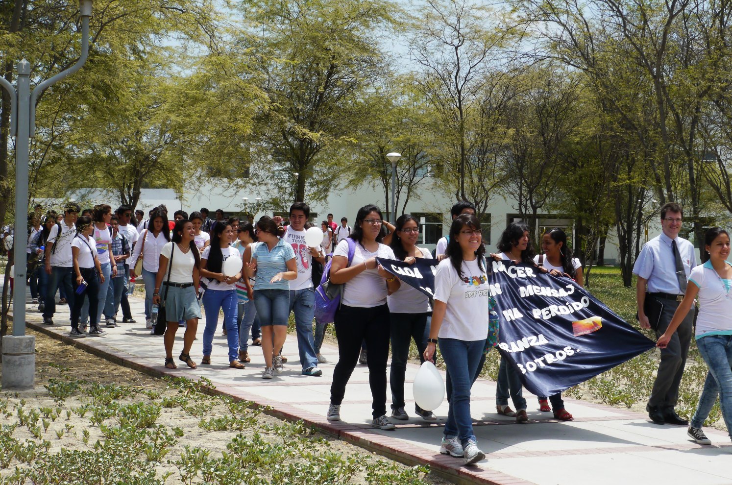Durante su recorrido, la delegación ingresó a las nuevas instalaciones de la cafetería de la UDEP, llevando su mensaje a favor de una cultura de vida, especialmente en defensa del concebido, e invitaron a la marcha convocada por el Arzobispo de Piura, para el 6 de abril. Los mensajes fueron recibidos con aplausos por los universitarios.