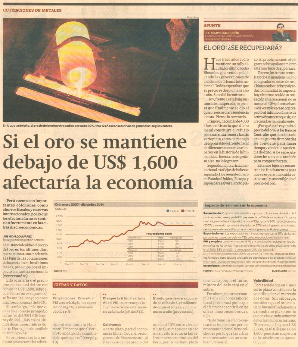 • Si el oro se mantiene debajo de US$1,600 afectaría la economía