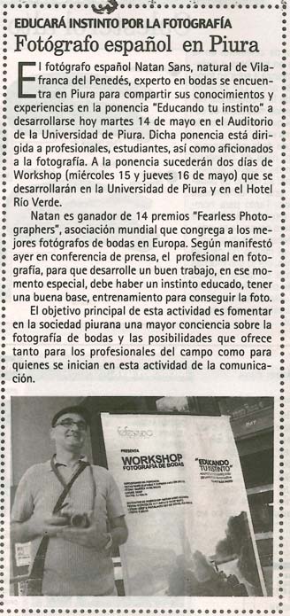 Natan Sans, experto fotógrafo de bodas, estará en la UDEP dictando dos conferencias durante el Workshop “Educando tu instinto”