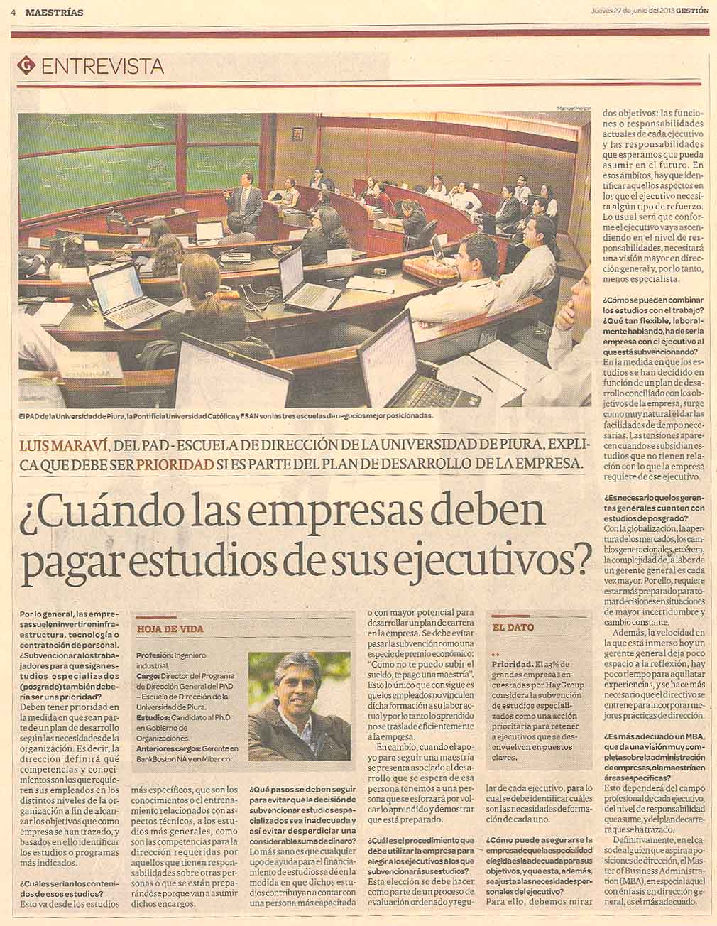 Luis Maraví Petrozzi, director del programa de Dirección General del PAD de la Universidad de Piura, explica que la capacitación pagada de los trabajadores de una empresa debe ser prioridad si es parte del plan de desarrollo de la misma.