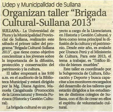 • Organizan taller “Brigada Cultural – Sullana 2013”