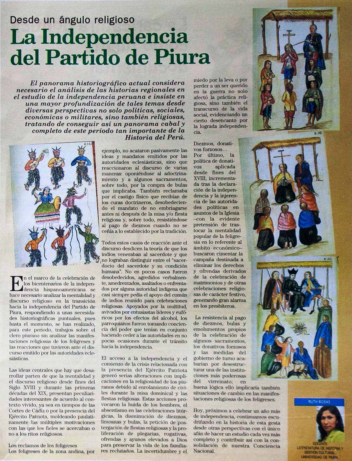 Ruth Rosas, especialista en Historia y Gestión Cultural, hace un análisis, desde un ángulo religioso, del proceso de independencia del Partido de Piura.