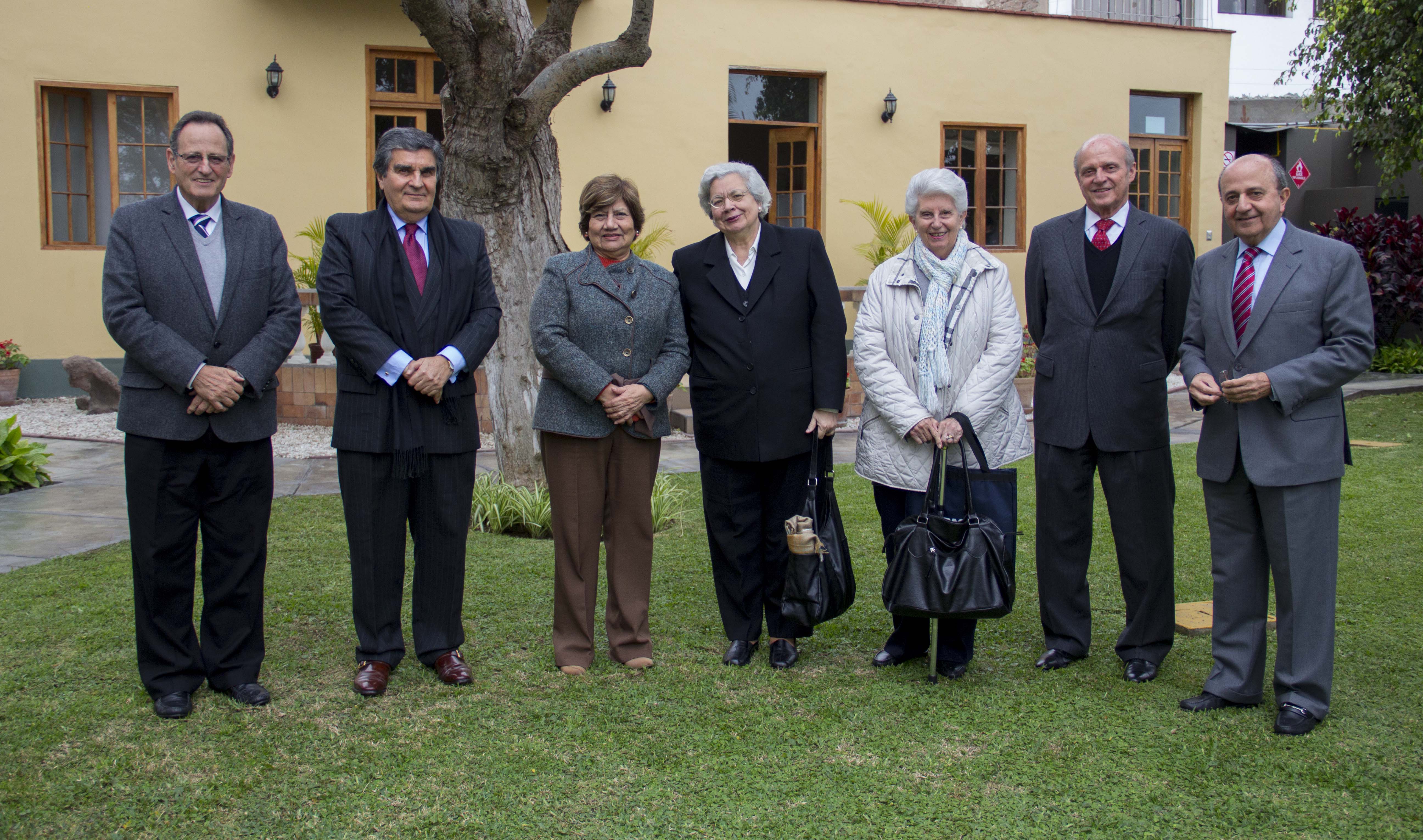 De izquierda a derecha: Dr. Antonio Mabres, Emb. Alfonso Rivero, Dra. Norma Añaños, Lic. Martha Fernández, Sra. Lucy Telge, Sr. Eduardo de la Piedra y Dr. José Ricardo Stok, miembros del jurado de Premio Esteban Campodonico Figallo 2013.