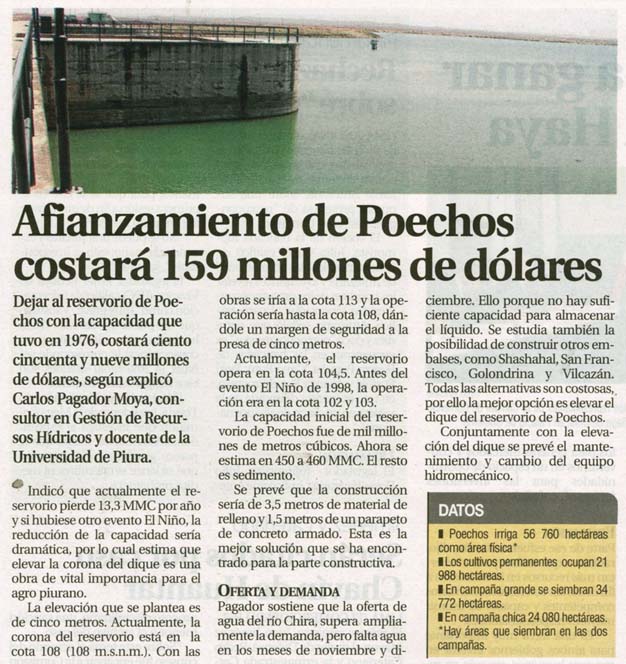 • Afianzamiento de Poechos costará 159 millones de dólares